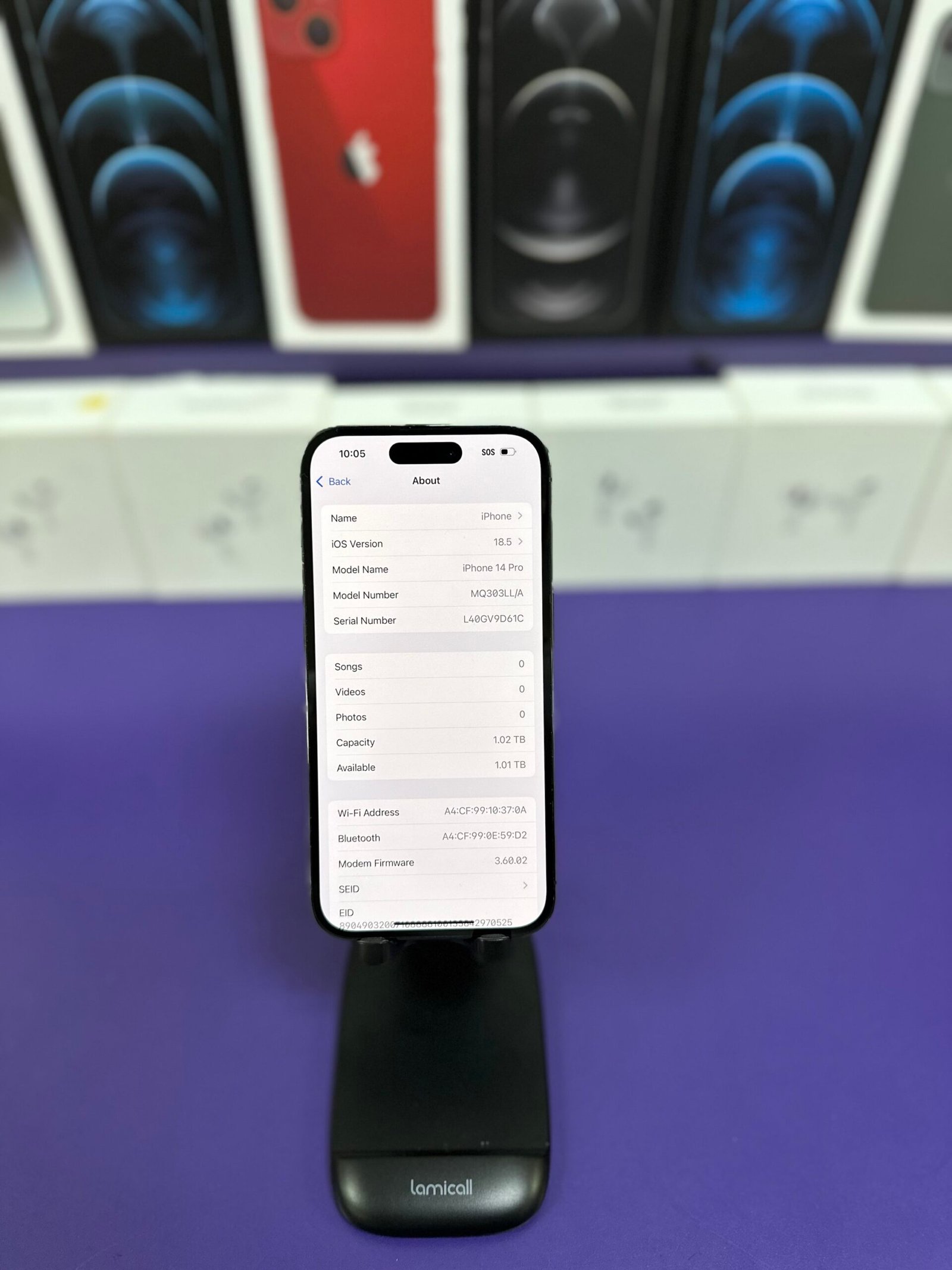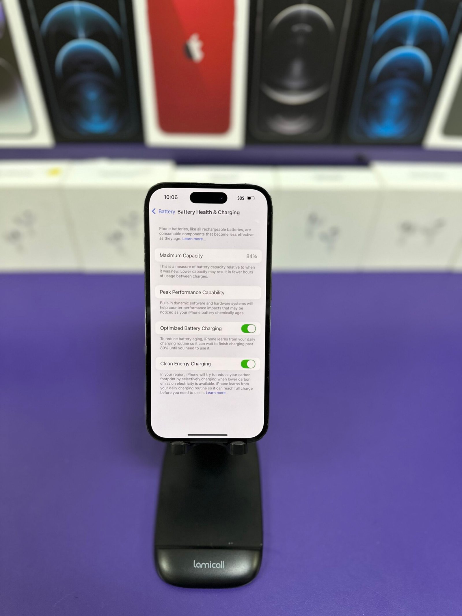 The iPhone 14 Pro 1TB in Deep Purple delivers elite performance paired with an enormous storage capacity built for power users. With 1TB of space, you’ll have more than enough room for high-resolution photos, 4K videos, large apps, and professional-level content without compromise. Powered by Apple’s A16 Bionic chip and supported by 84% battery health, this device provides smooth, reliable performance for everyday use and demanding tasks alike.
