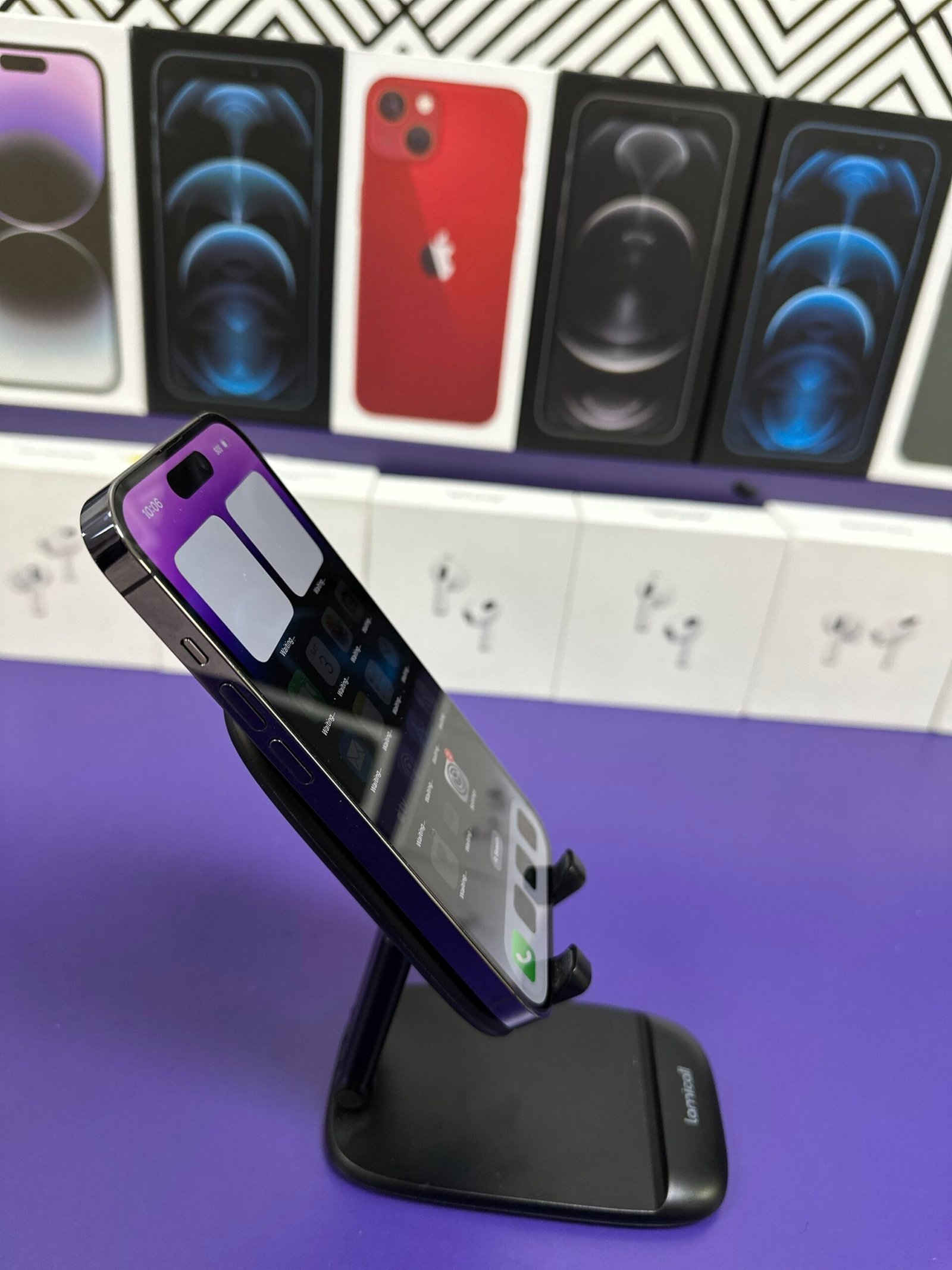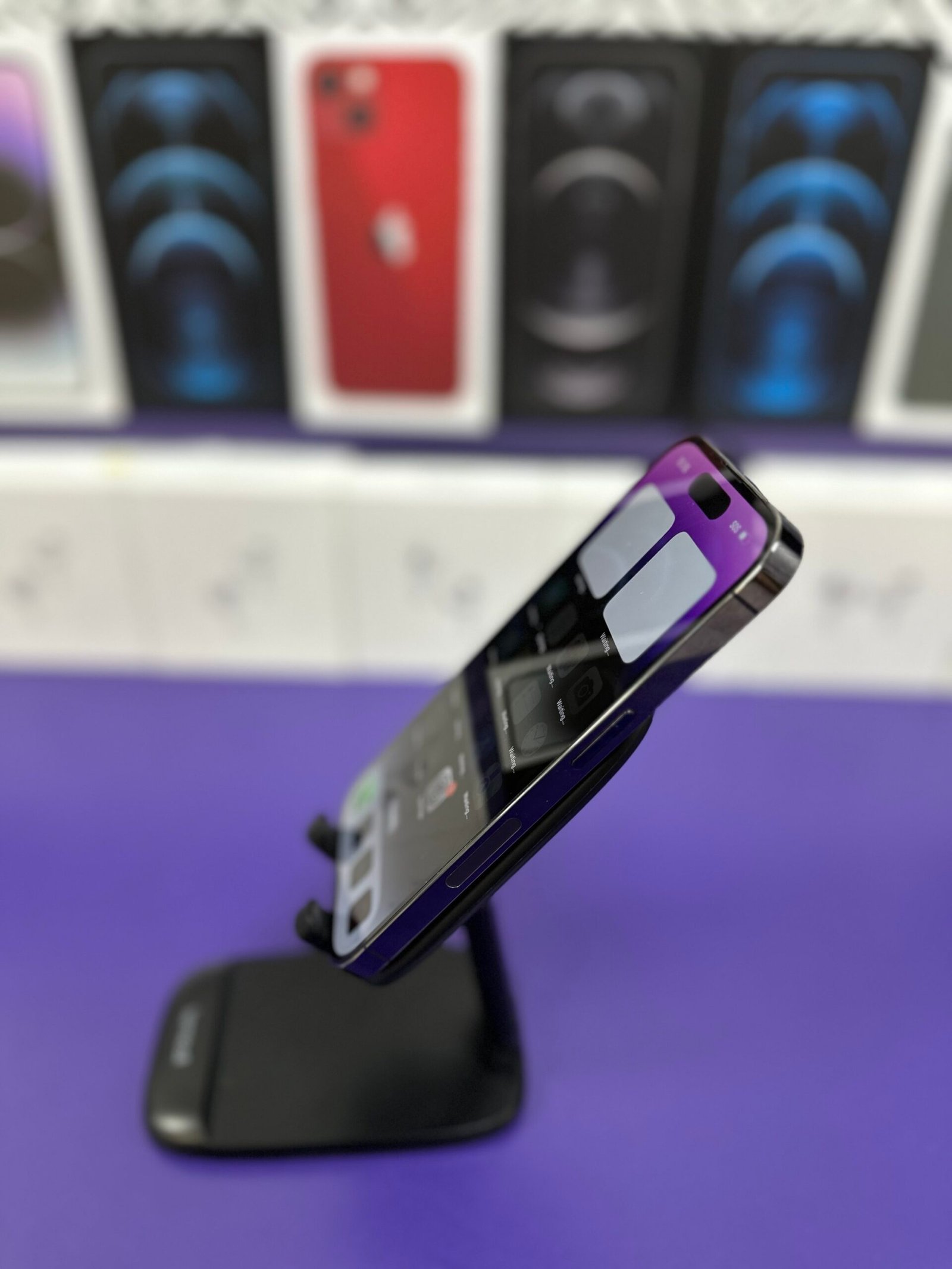 Finished in Apple’s iconic Deep Purple, this iPhone 14 Pro stands out with a bold yet elegant look. Its premium stainless steel frame and durable glass construction offer strength without sacrificing a sleek, comfortable feel. Being fully unlocked, it works seamlessly with all major carriers, giving you the flexibility to choose your network and stay connected wherever you go—locally or internationally.
