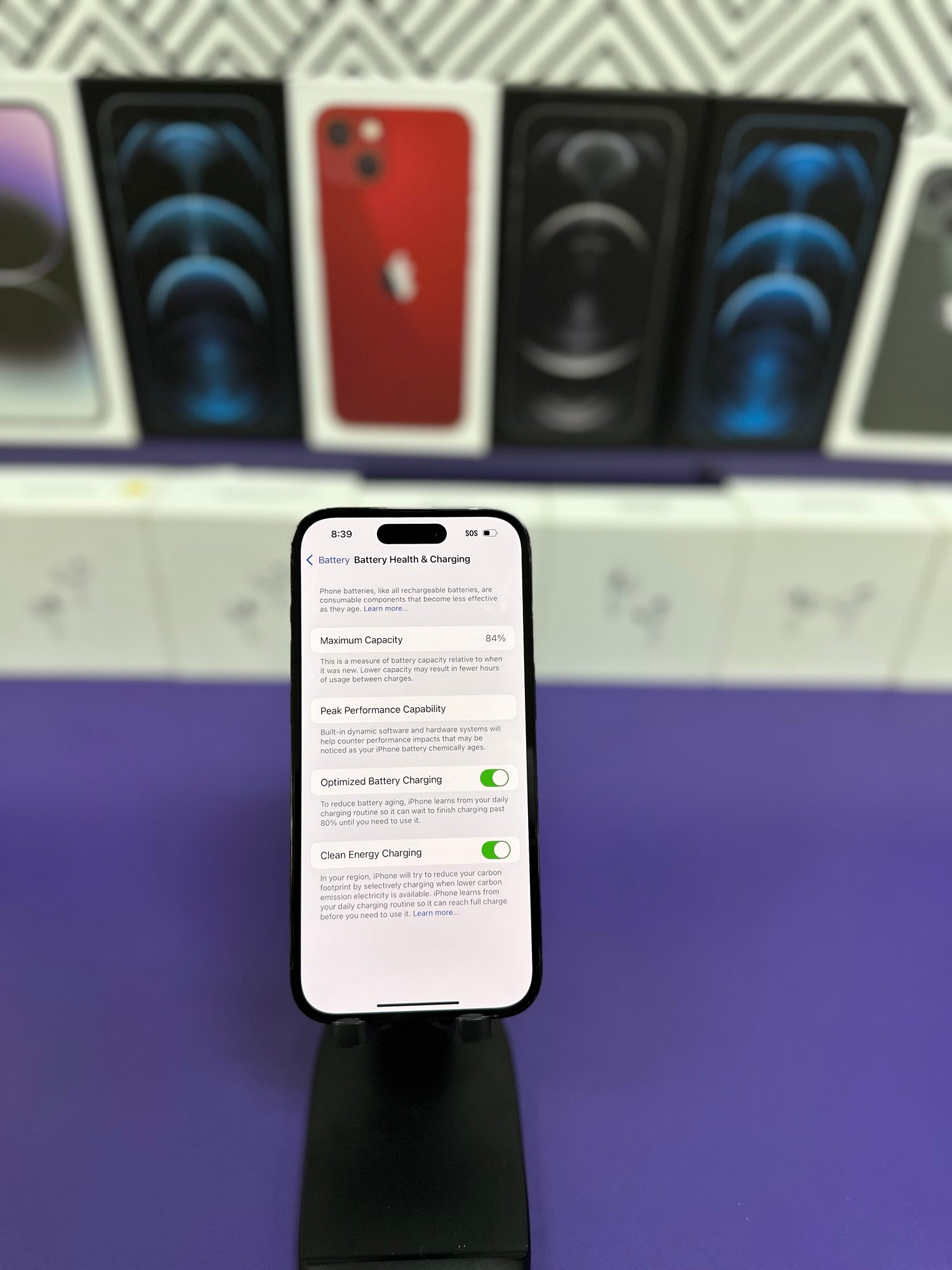 The iPhone 14 Pro 512GB in black offers exceptional performance and an incredible storage capacity suitable for all your needs. Whether you're storing high-resolution photos, videos, or numerous apps, this device is built to deliver consistent power and efficiency. With its 84% battery health, it ensures reliable daily usage while maintaining top-notch functionality, making it ideal for users seeking premium technology at their fingertips.